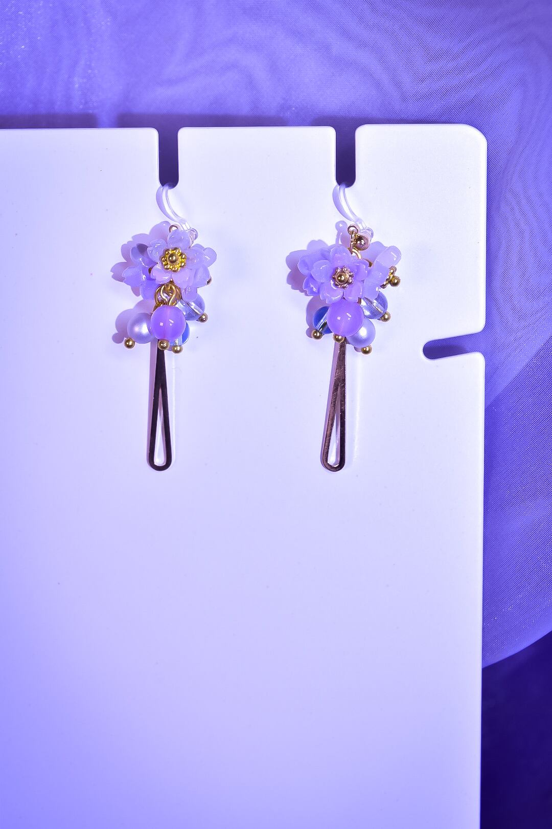 お花とビーズがいっぱいのブーケをイメージしたノンホールピアスです。