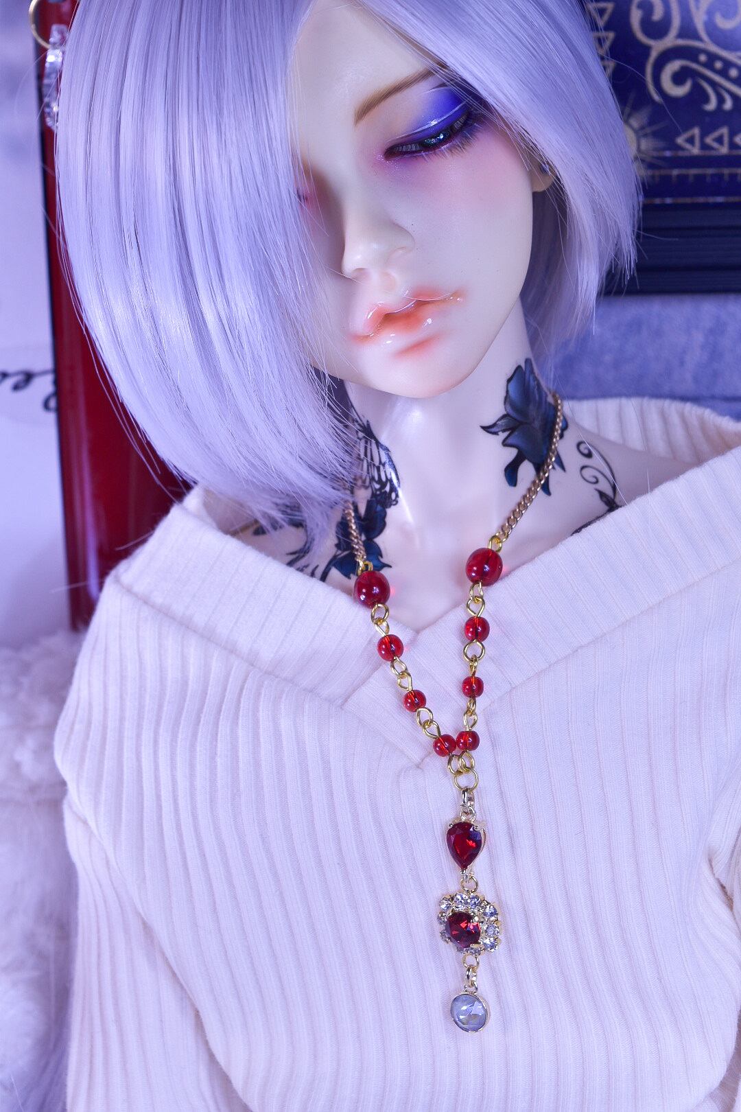 スワロフスキービジューと赤のクリアビーズを使用したネックレス。